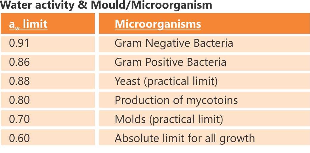 The first parameter is the moisture content which measures the total amount of water contained in a substance, usually expressed as a percentage of the total weight (%). Feed manufacturers track the moisture contents of raw materials, mash feed, and pellets during all processing stages to optimize quality, yield, and profitability. For curbing mould growth, another indicator is even more critical: water activity (aw) which is defined as the ratio of the partial vapour pressure of water in a substance to the partial vapour pressure of pure water under the same temperature and pressure conditions. Basically, it is the energy state of water in a substance, i.e., its potential for (bio)chemical activity, including the growth of bacteria, yeasts, and moulds. Lesser the water activity (aW), better the feed quality and lesser the chances of microbial growth.