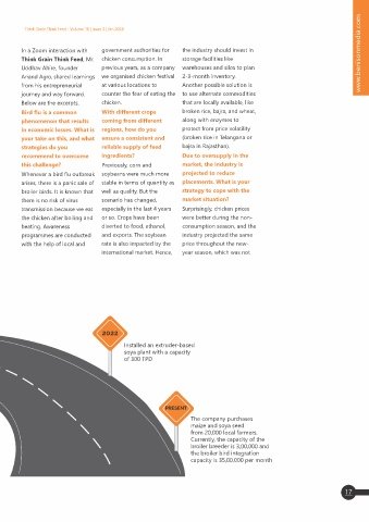 www.benisonmedia.com INTERVIEW Think Grain Think Feed - Volume 10 | Issue 3 | Jan 2024 In a Zoom interaction with government authorities for the industry should invest in www.benisonmedia.com